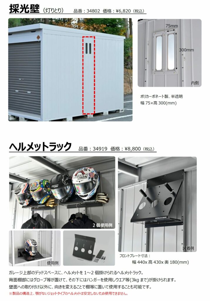人気オプション【採光壁】と【ヘルメットラック】¥15620相当をプレゼント!