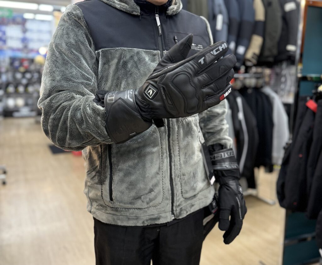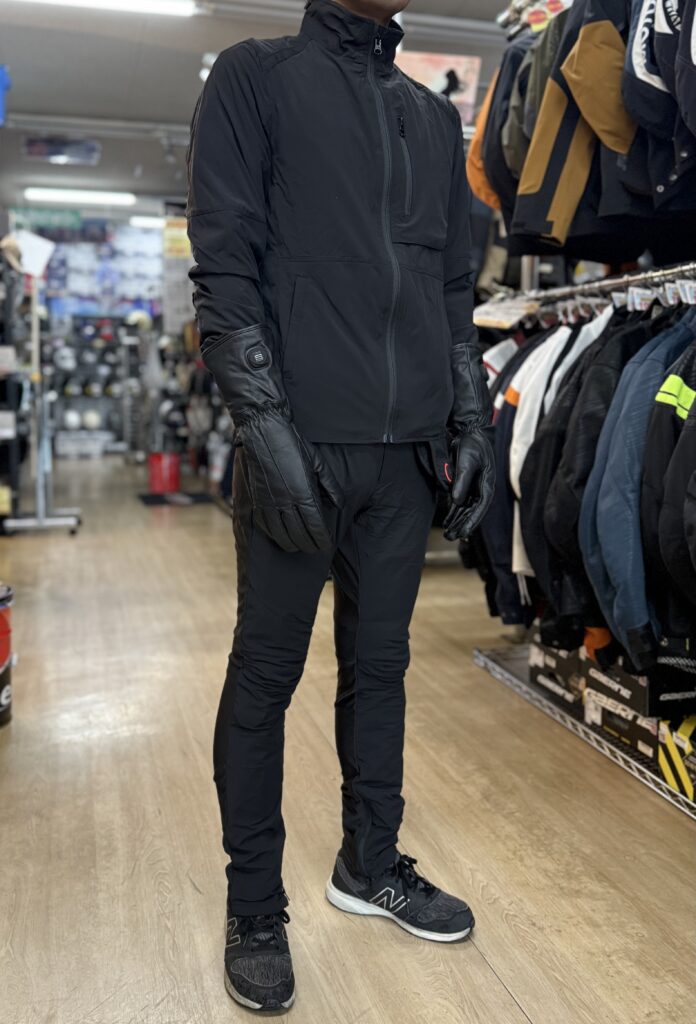 全部揃えれば、真冬の極寒ツーリングでの高速道路でも、暖かに快適に走る事が出来ちゃいます。全身揃えると消費電力が多くなります、バッテリーサイズの確認が必要になりますので、詳しくは店頭スタッフにお問い合わせください。