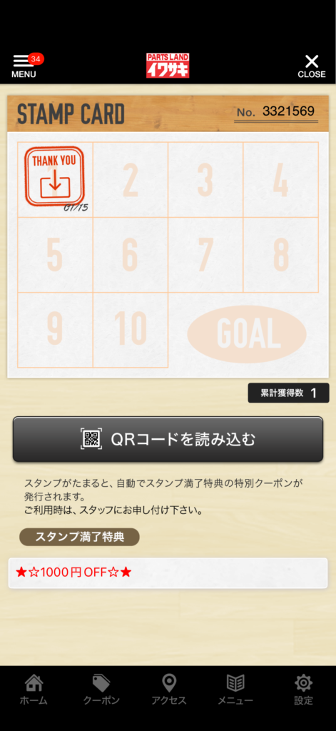 アプリスタンプとは、イワサキアプリ内で貯められるスタンプのこと!