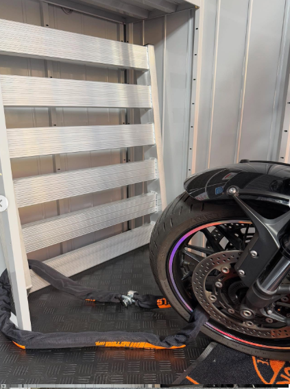 盗難や雨・風・台風など大切な愛車(お宝)をバイク専用ガレージがしっかり守ってくれます。ガレージ本体は【100人乗っても大丈夫💪】で有名な稲葉製作所がベースで、バイク用品メーカーならではの「ライダー目線」で設計された、高防犯・高耐久な屋外収納庫です。土間工事不要で設置できる床付き構造、3重ロックによる高いセキュリティ、豊富なサイズ展開(36通り)が特徴で、趣味の空間としてカスタマイズも楽しめます。