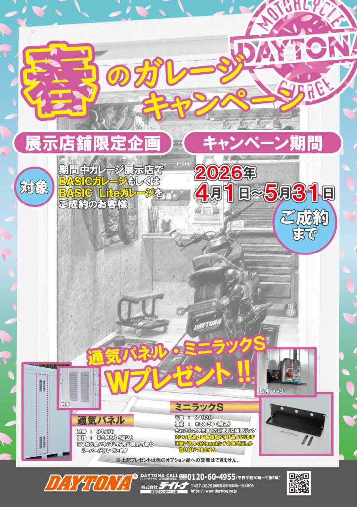 バイクの保管でおすすめな【デイトナ バイクガレージ】の春キャンペーンが今年も始まりました。